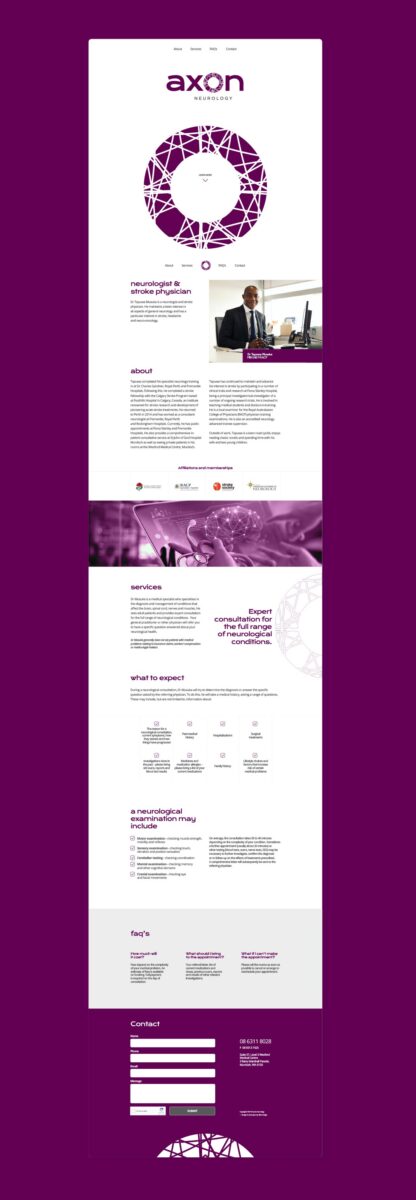 Using an animated logo to capture the user’s attention, the single page website design is clean and uses a reassuring colour palette to enhance the information.