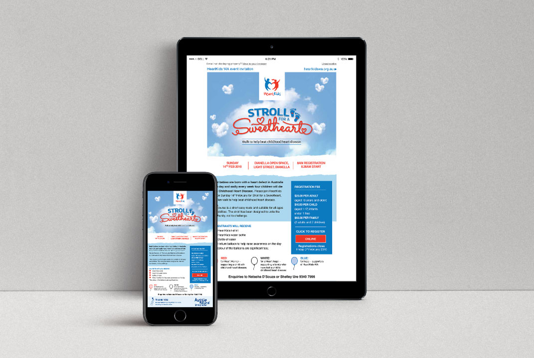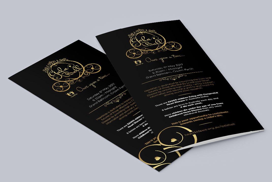 A not-for-profit organisation focussed on supporting the families of children and adults with heart disease, we are proud to be a part of HeartKids’ ongoing branding and awareness since 2006. Every year HeartKids WA’s grandest fundraising event is their Annual Gala Ball. The Ball takes on a different theme each year which is carried through the entire creative collateral range. Printed materials include a sponsorship prospectus, donation flyers, posters, event programs, menus and signage, added to a full online suite for Facebook, the HeartKids WA website and ticketing pages. Further to the Ball, HeartKids host additional regular fundraising events which are promoted through print and digital collateral including ‘Stroll for a Sweetheart’ and ‘Cuppa for HeartKids’. Slick Design have created and printed seasonal Newsletters, internal Presentation Folders, Flyers and also digital banners for social media and web.