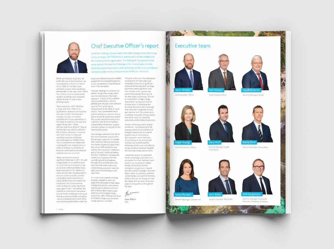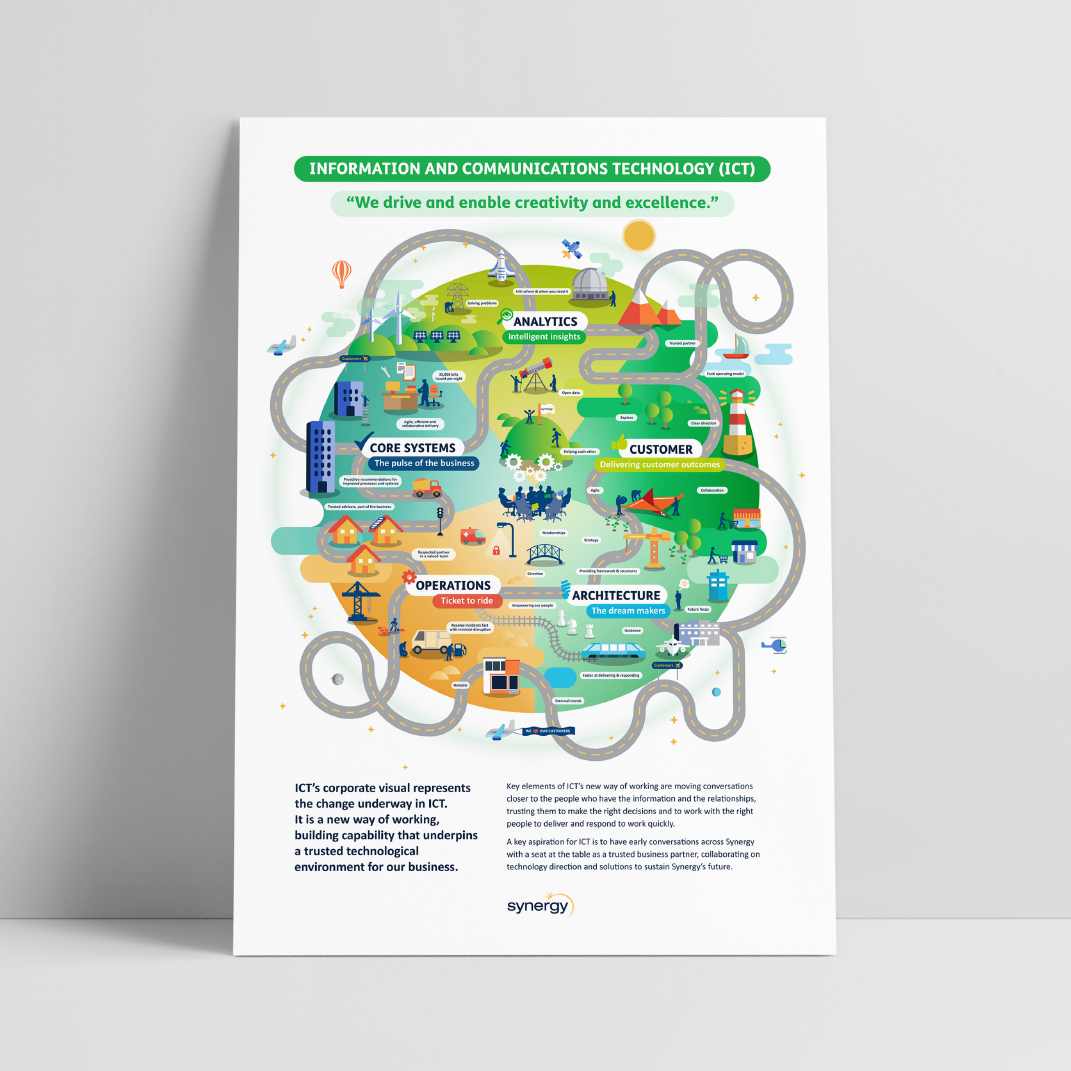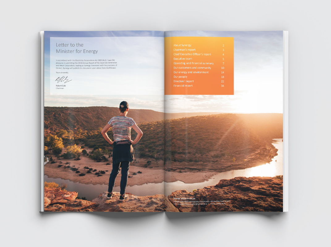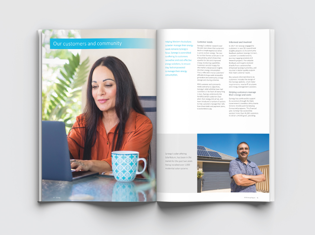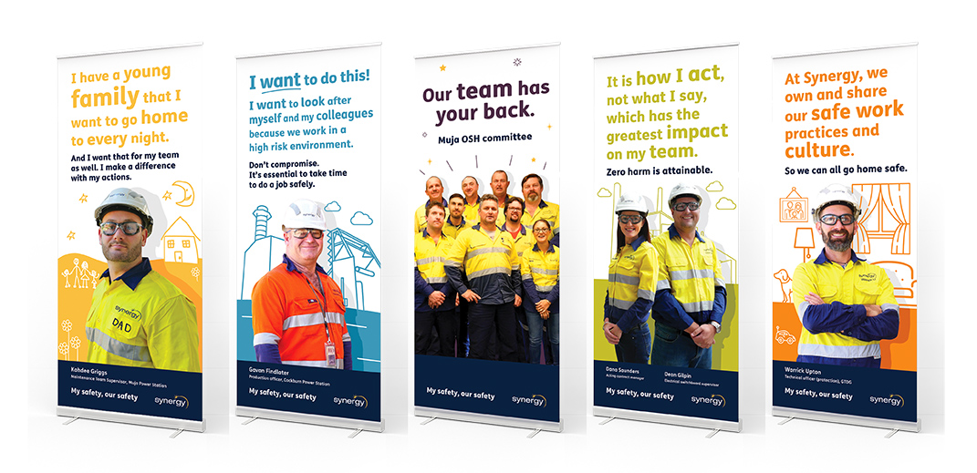As a preferred supplier to Synergy, we work with many staff members on different projects. These involve print and digital internal requirements including booklets, posters and flyers; electronic newsletters and infographics. We have also created and printed the Synergy Annual Report since 2013. In 2017 Synergy started a new internal Safety at Synergy campaign focussing on its staff and their safety, for which we have created monthly slogans and produced posters and pull up banners.